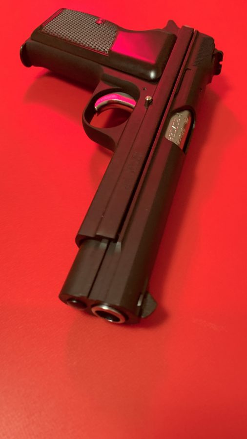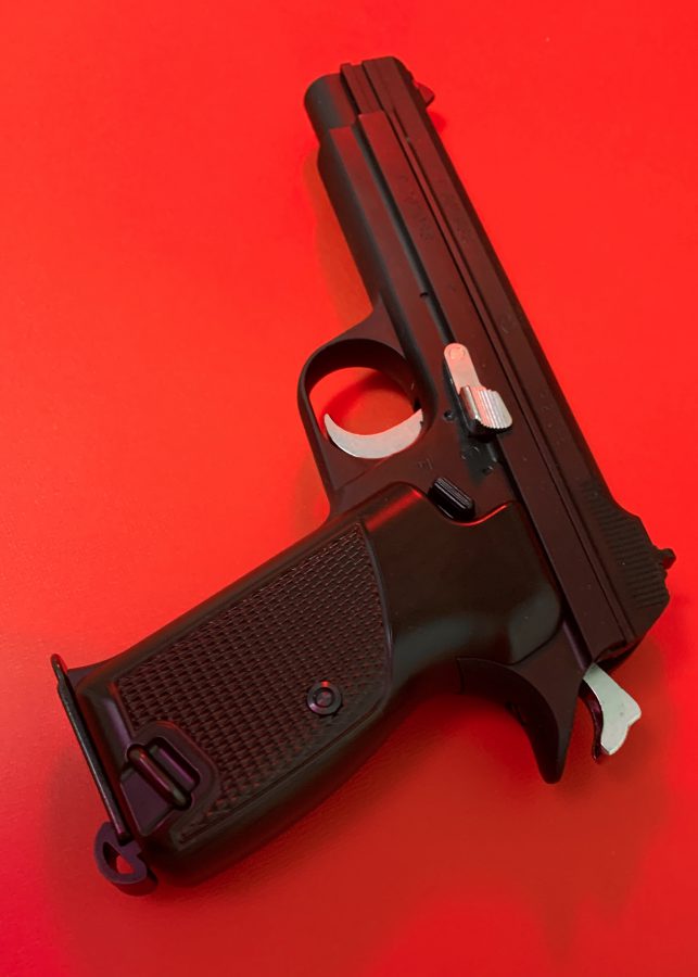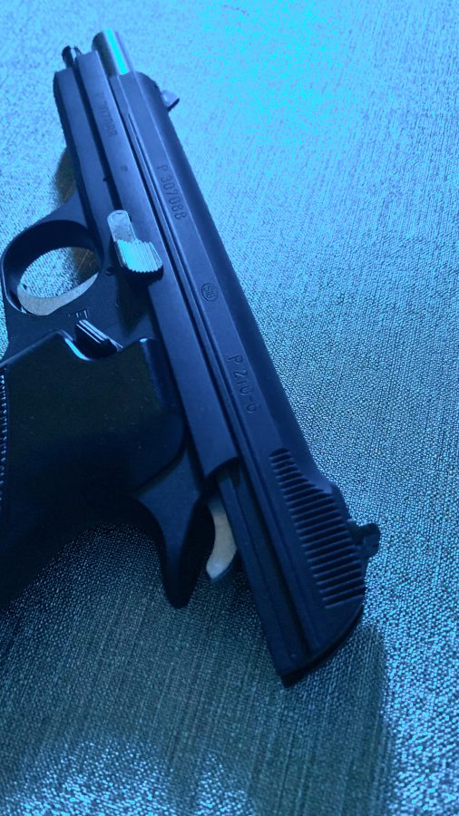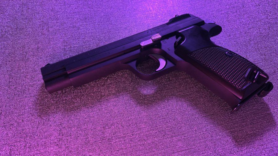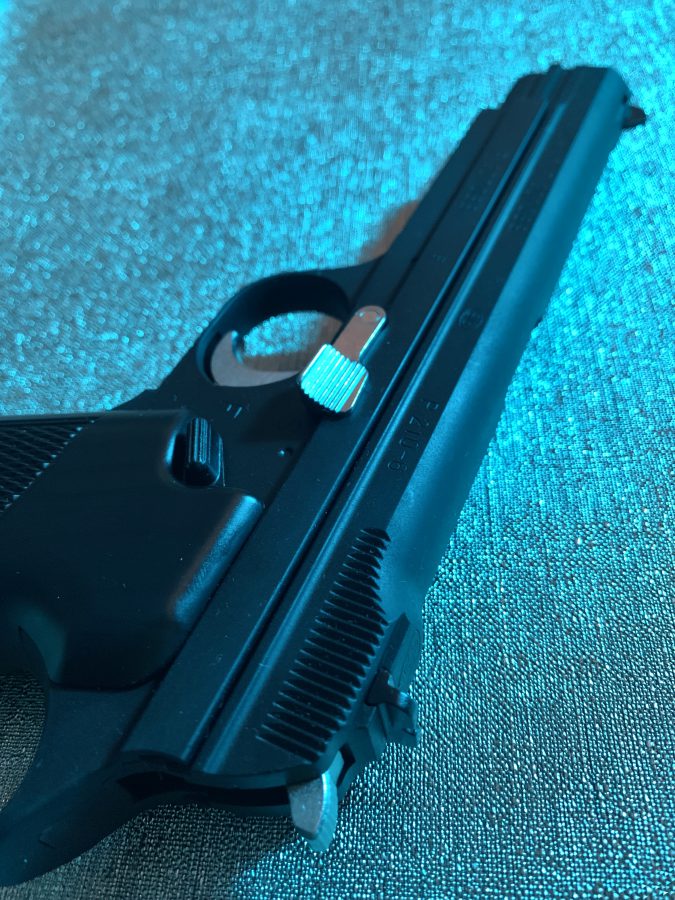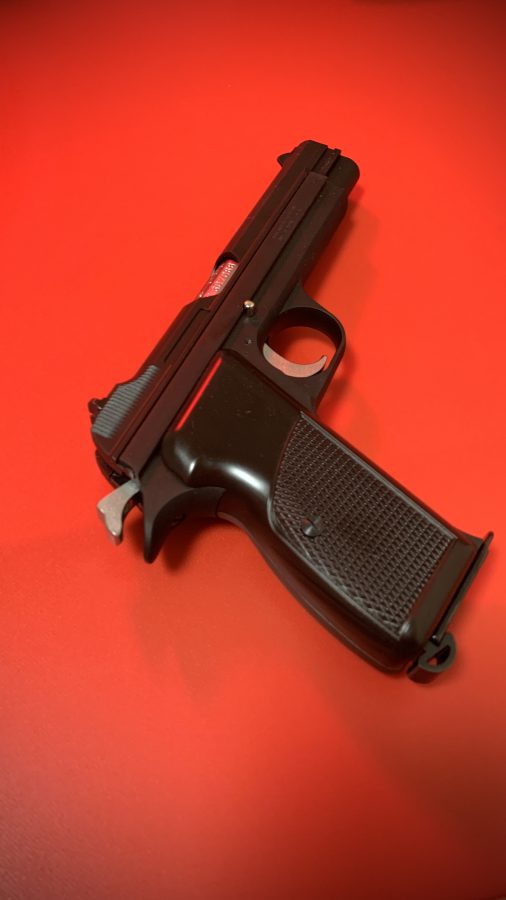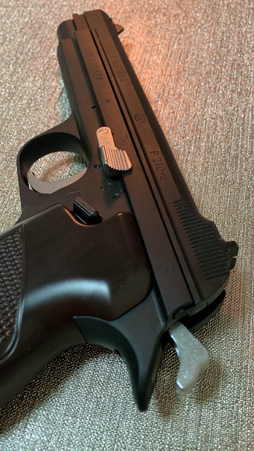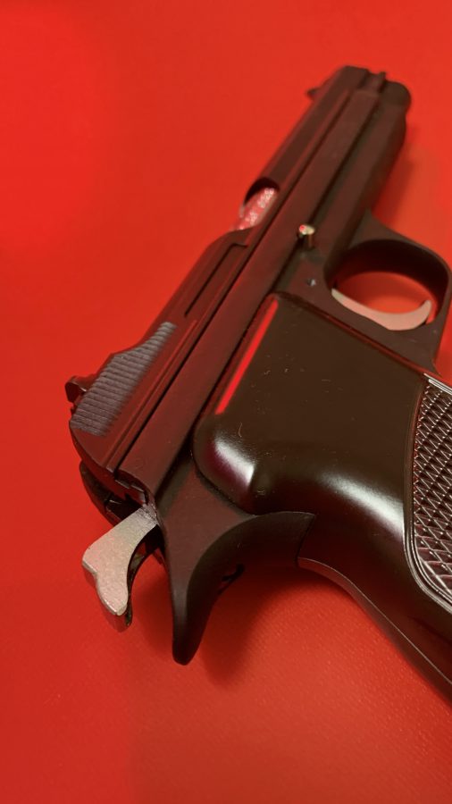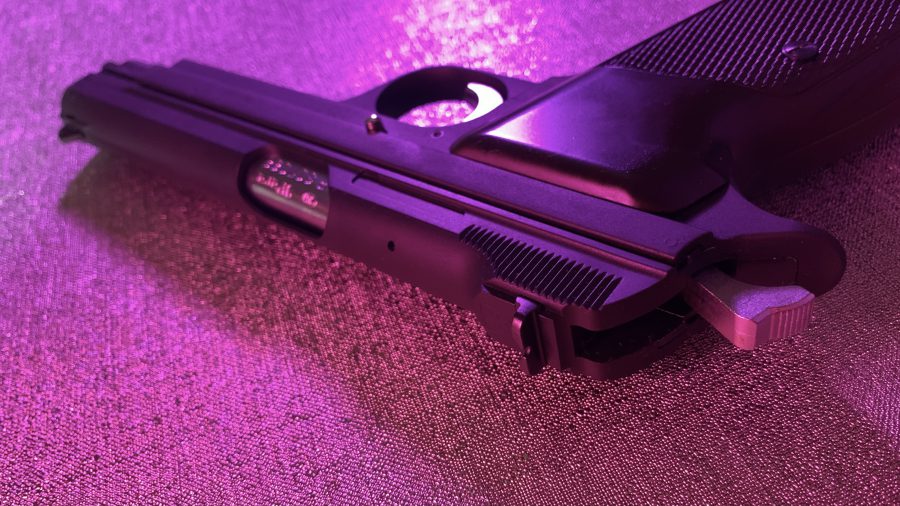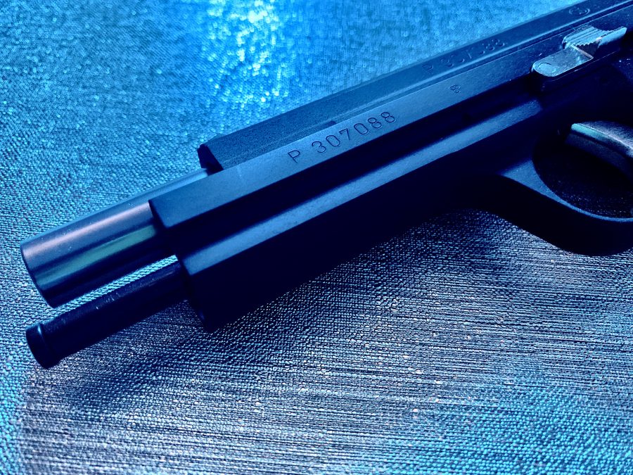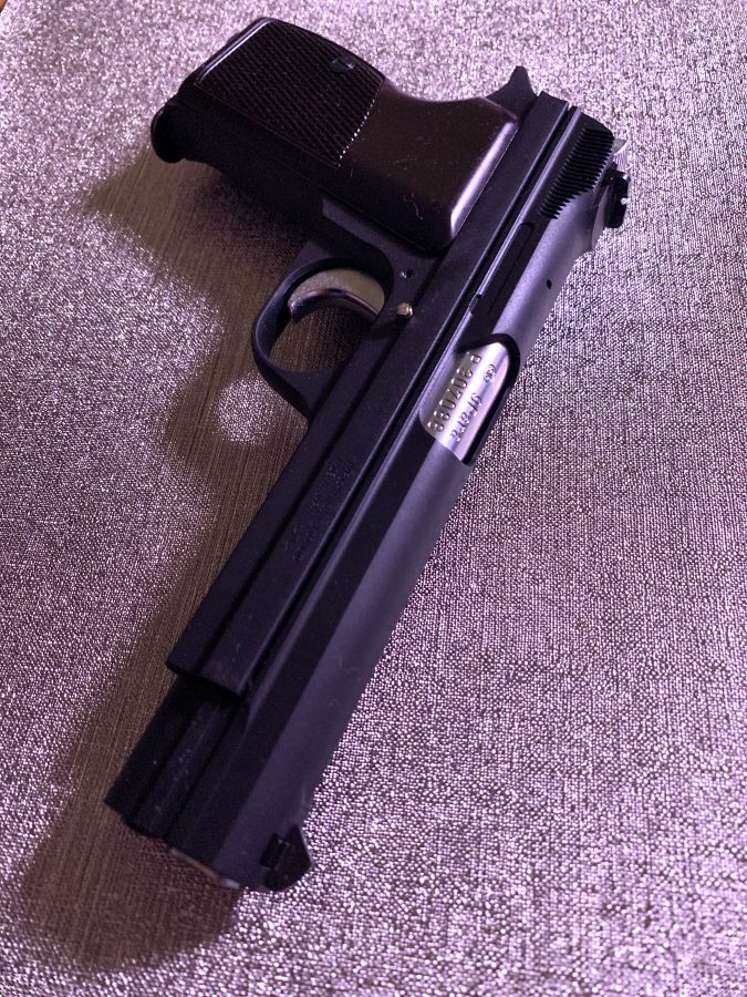 シングルアクション、シングルカラムのシンプルで美しい銃。フレームの方がスライドを包み込む構造は後のCZ75と同じ構造。