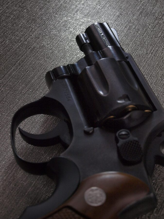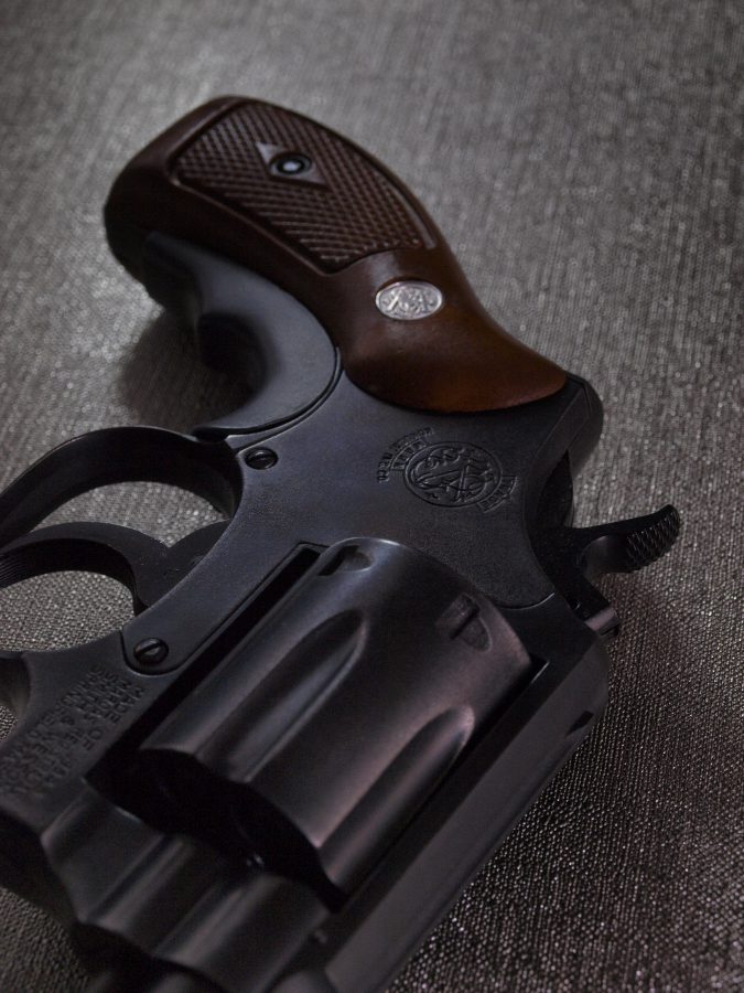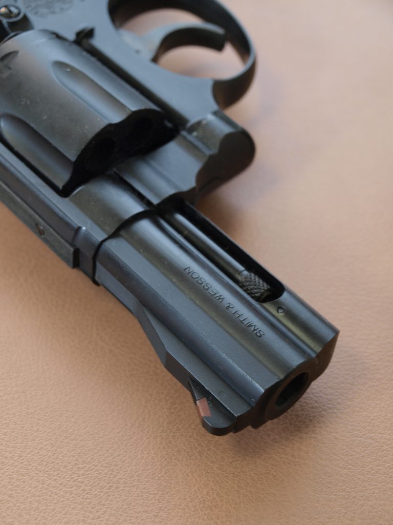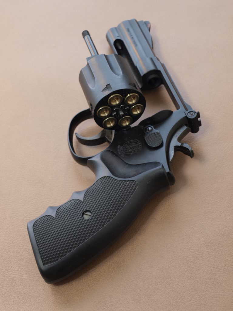 現在のS&Wリボルバーの基礎となったと言われる古くからあるモデル。のちのM19とは違い.357マグナムは撃てない.38スペシャルのみのモデル。