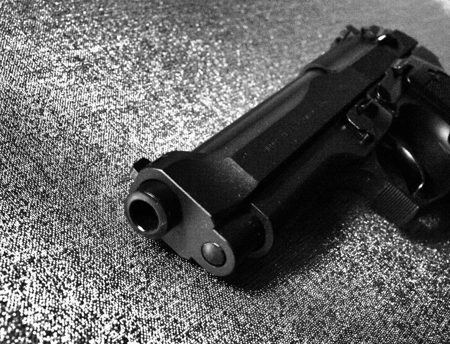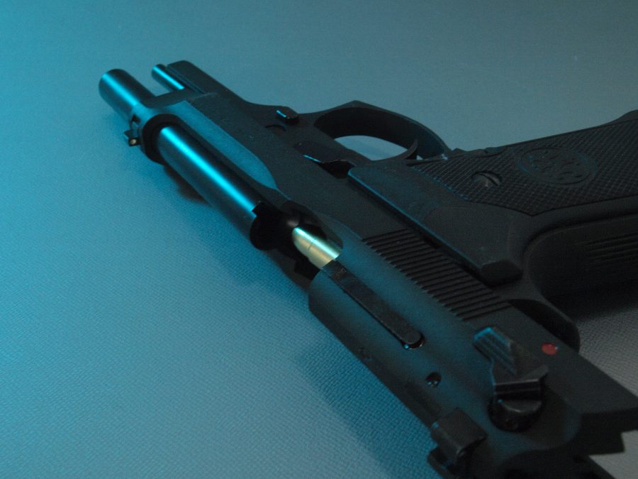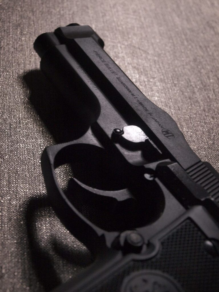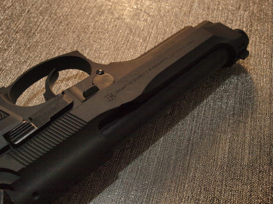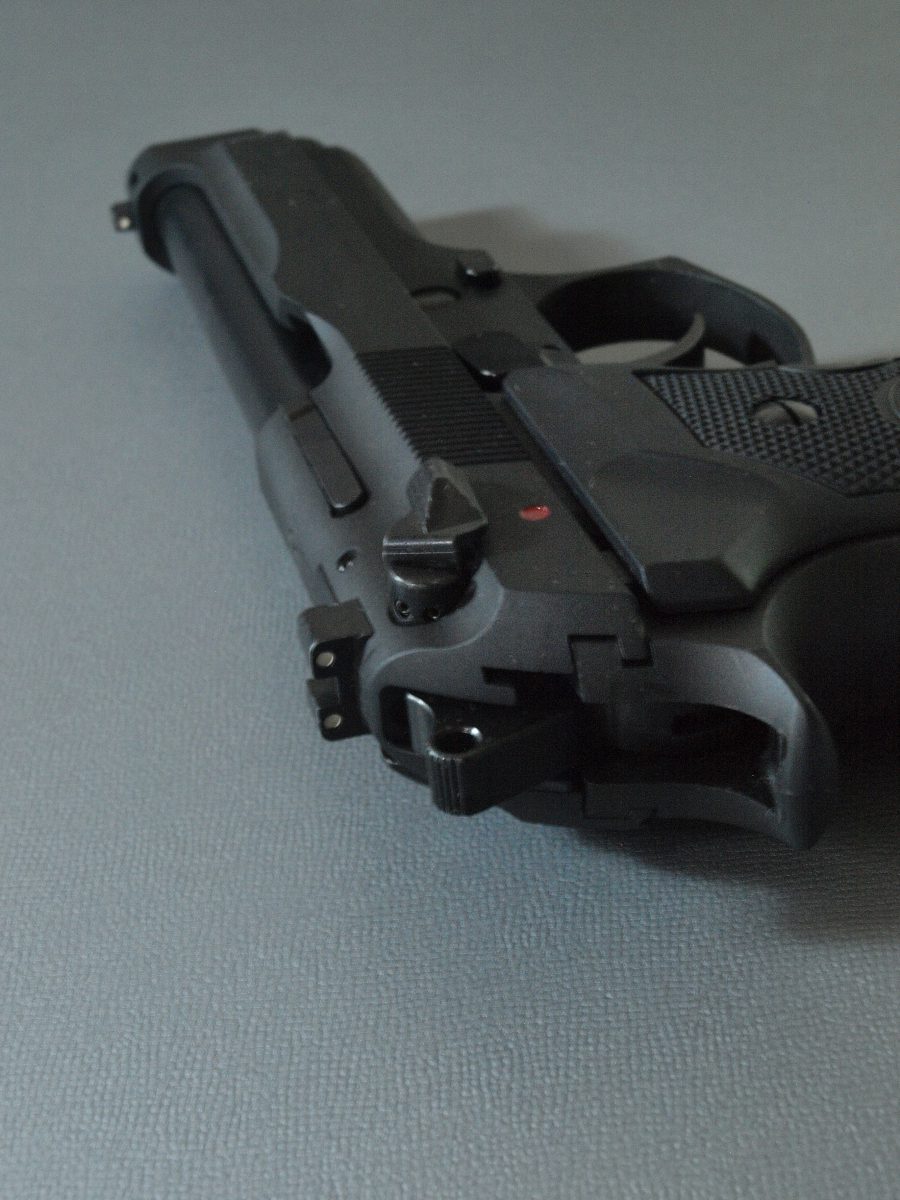 マルシン工業製モデルガン、ベレッタ92。強装弾に対応するべくスライドの中央を盛り上げたブリガディアと呼ばれる強化スライドを再現したモデル。