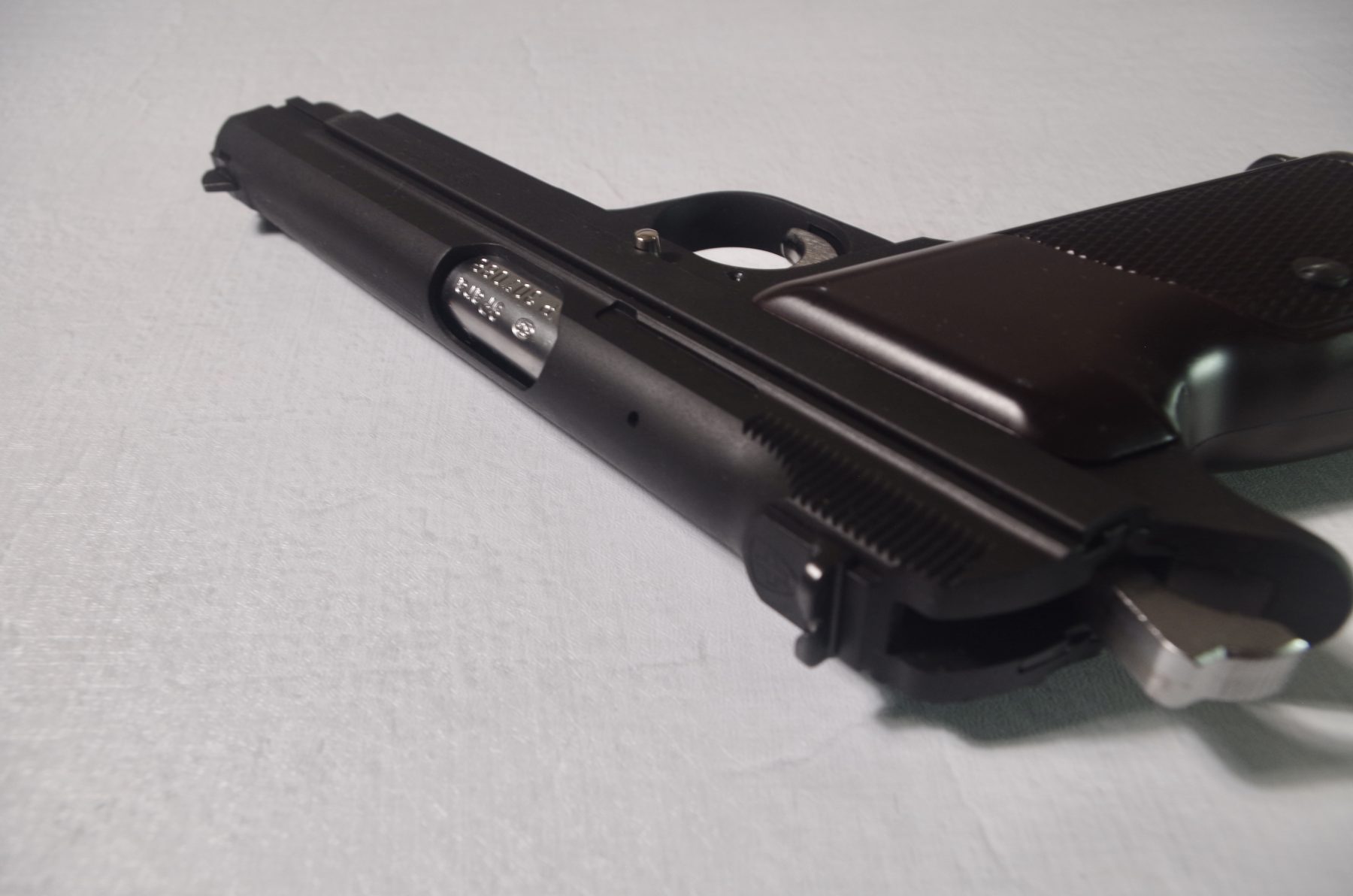 リアサイトの前には、小さなダットサイトを直に装着できるマウントが備わっている。拳銃に光学サイトがどこまで必要なのかよくわからないけど、実際にサイトを載せて楽しむということができるのはいいかも。